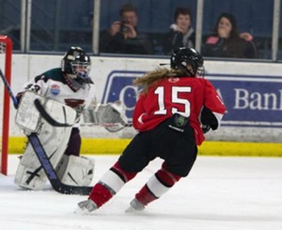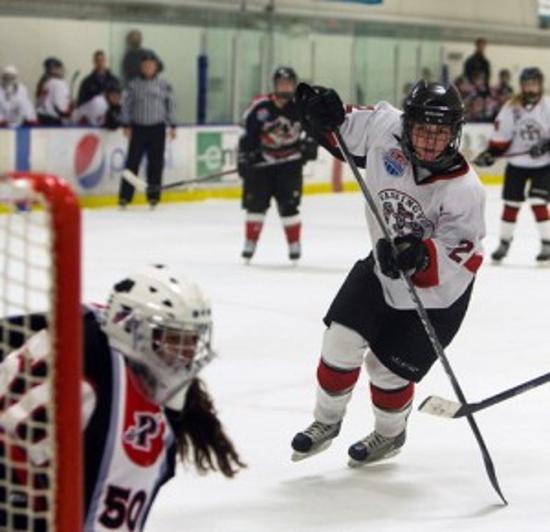 The Washington Wild 19U Rep team’s first game at the 2013 USA Hockey Tier II Girls’ Nationals in San Jose, CA pitted them against last year’s 19U AA runner up, the Colorado Tigers, Rocky Mountain district winners. Although not the easiest way to open the tournament, it gave the Wild a good idea of what they were up against in the three-game preliminary round. The game started early Wednesday evening, and while most of the first period was scoreless, the pace of the game made it clear that both teams were excited to be at Nationals. While the Tigers held a slight advantage with previous experience at this level, it wasn’t until the end of first period that they capitalized and took a 1 – 0 lead. An insurance goal late in the second period eventually meant a 2 – 0 loss for the Wild.The Wild spent little time dwelling on the defeat, as they met the New England champs, Portland Jr. Pirates, Thursday morning. Portland presented a bit of an unknown as usually Connecticut teams represent New England. However, Portland had knocked off Connecticut in the district semifinals and New Hampshire in the finals to advance to Nationals. It was immediately apparent that the Wild controlled the action from the opening face off. The Wild initiated the scoring at 6:18 in the first and then scored again late in the period to take a commanding 2 – 0 lead. Two more goals in the second, at 3:07 and 5:19 cemented the Wild’s lead. They retained their 4-0 lead, balancing their National record at one win and one loss.